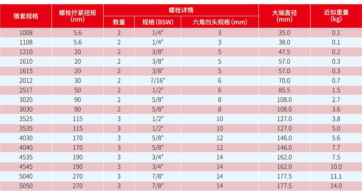 Tightening torque of taper sleeve